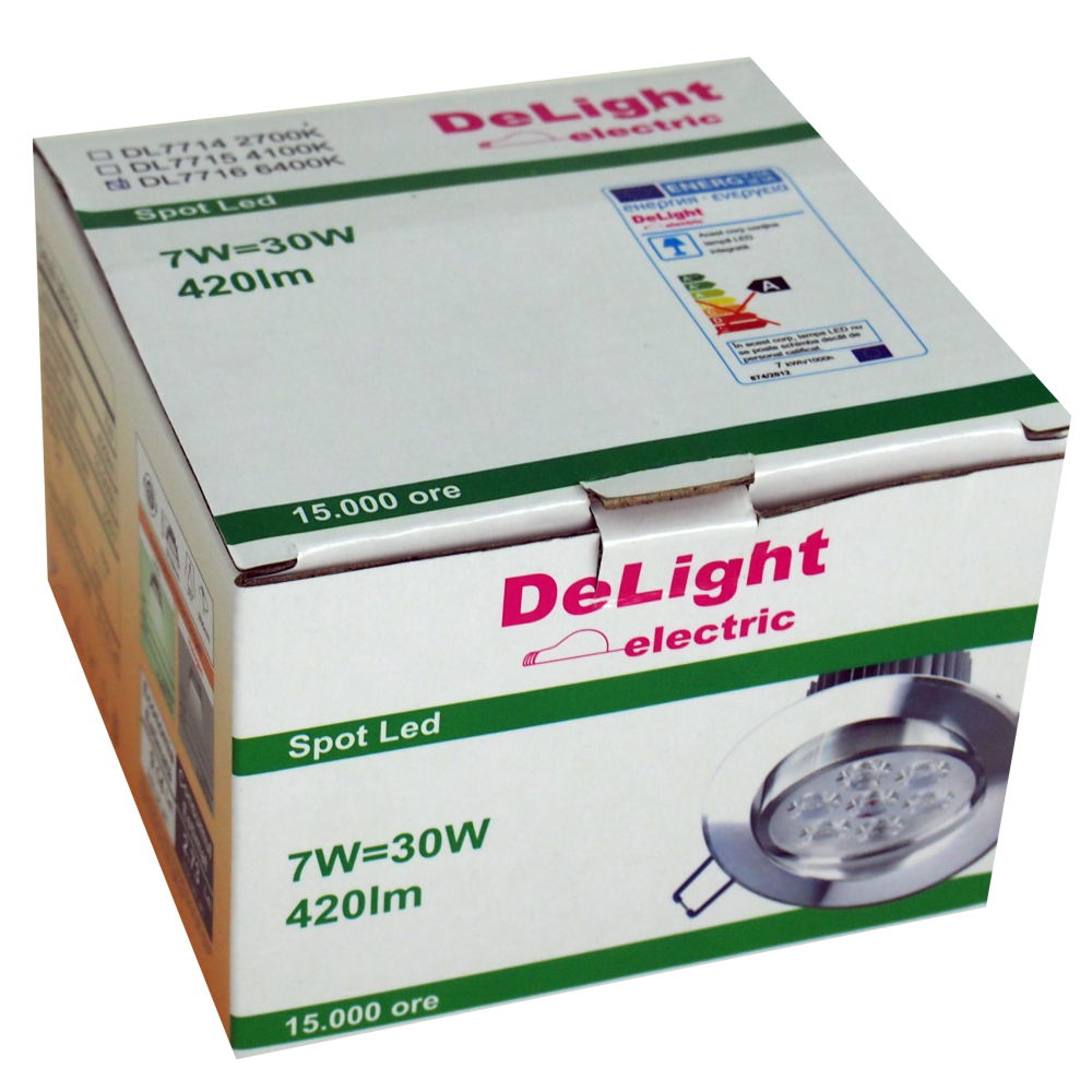 • 60 bucăți/cutie de Spot LED din Aluminiu 7W 6400K
