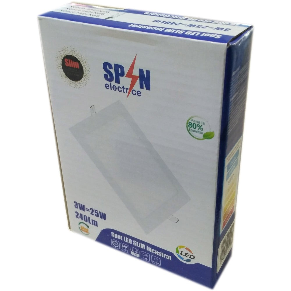 Spot LED Slim Pătrat 85x85mm, 3W (Echivalent 25W) cu Lumină Caldă 2700K – Iluminat Eficient pentru Interior