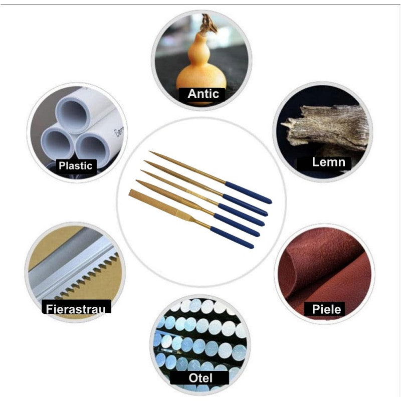 Trusă cu 5 Pile Fine 180mm - Set Profesional pentru Finisare și Slefuire a Lemnului, Metalului și Plasticului