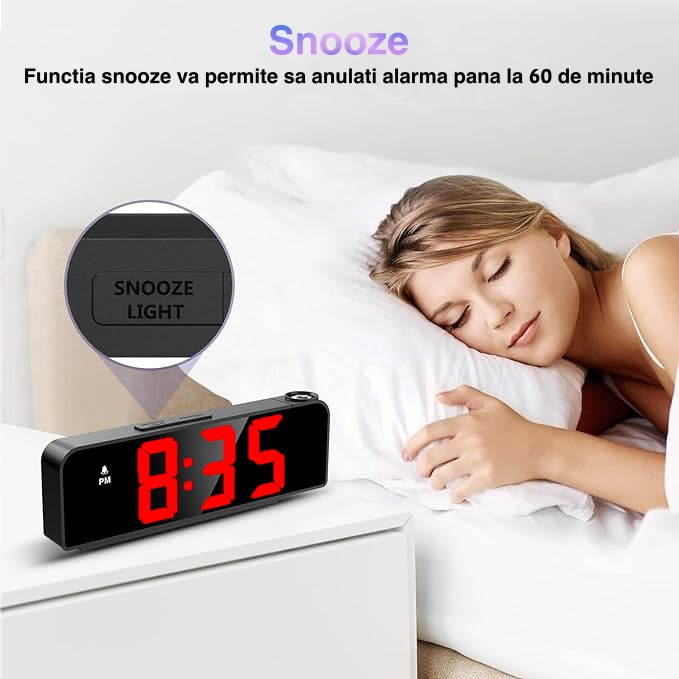 Ceas Digital de Masă cu Proiecție LED Roșu – Alarma, Termometru și Funcție Snooze