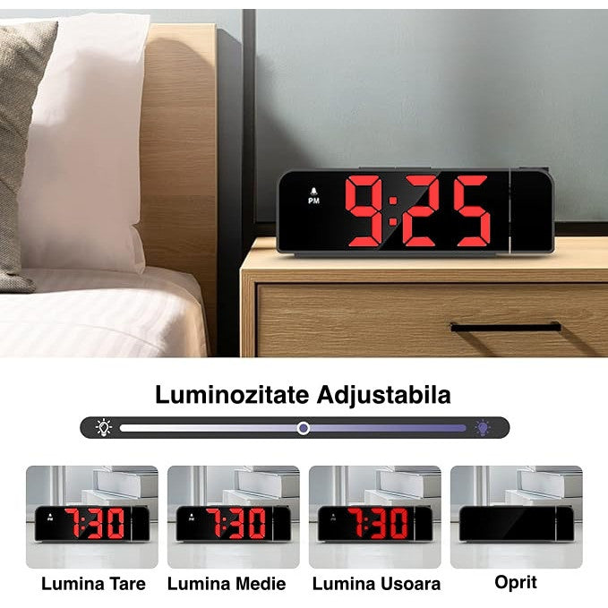 • Ceas Digital de Masă cu Proiecție LED Roșu