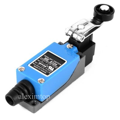 Limit switch type with movable arm and contact roller, used in multiple applications and machines.