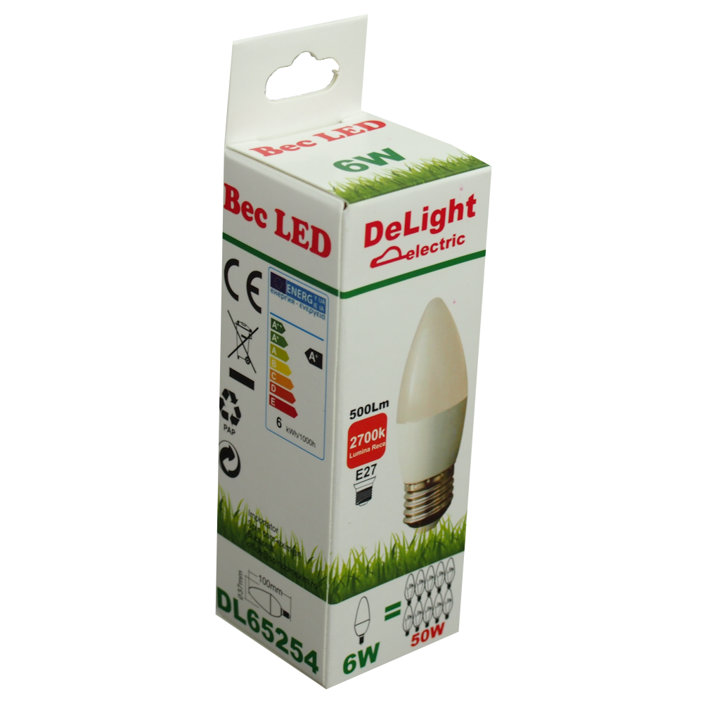 Îmbunătățește atmosfera din locuința ta cu Becul LED Lumanare E27, Model C37. Cu un consum de doar 6W, acest bec oferă o lumină caldă de 2700K, echivalentă cu 50W din sursele tradiționale, ideal pentru a crea un ambient plăcut și primitor în orice încăpere. Designul său compact și eficiența energetică îl fac perfect pentru utilizarea zilnică.