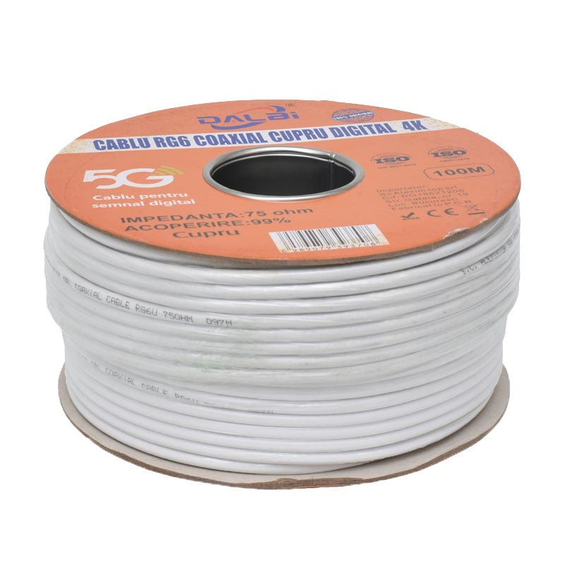 Cablu Coaxial TV RG6 din Cupru, 100m – Conexiune Stabilă pentru Semnal TV de Înaltă Calitate