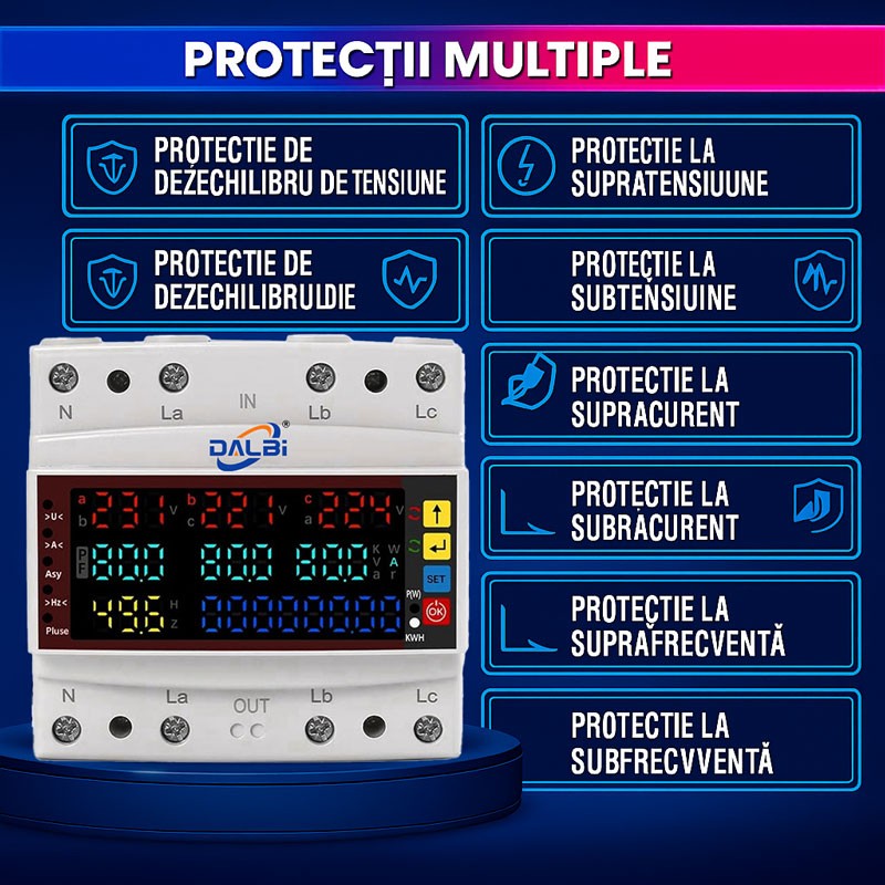 Într-o lume în care siguranța și eficiența energetică sunt esențiale, Protectorul Multifuncțional Trifazic de 100A reprezintă soluția ideală pentru protejarea rețelelor electrice. Acest dispozitiv avansat nu doar că monitorizează parametrii critici, ci oferă și funcții de protecție automată, asigurându-se că instalațiile electrice și echipamentele conectate sunt în siguranță.