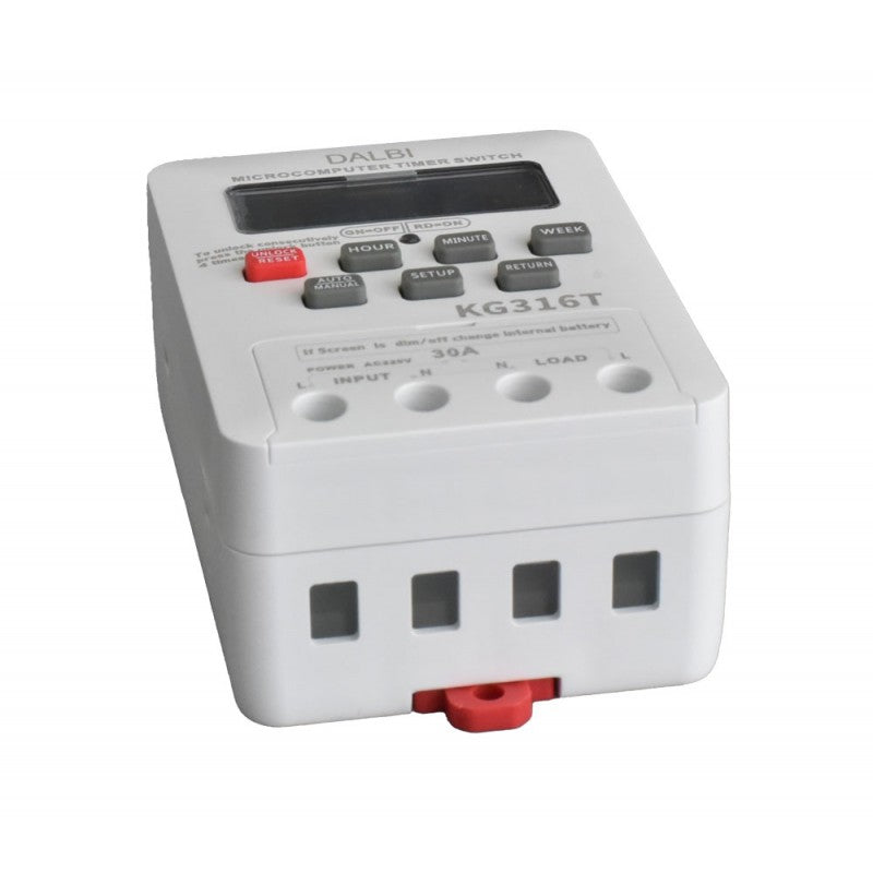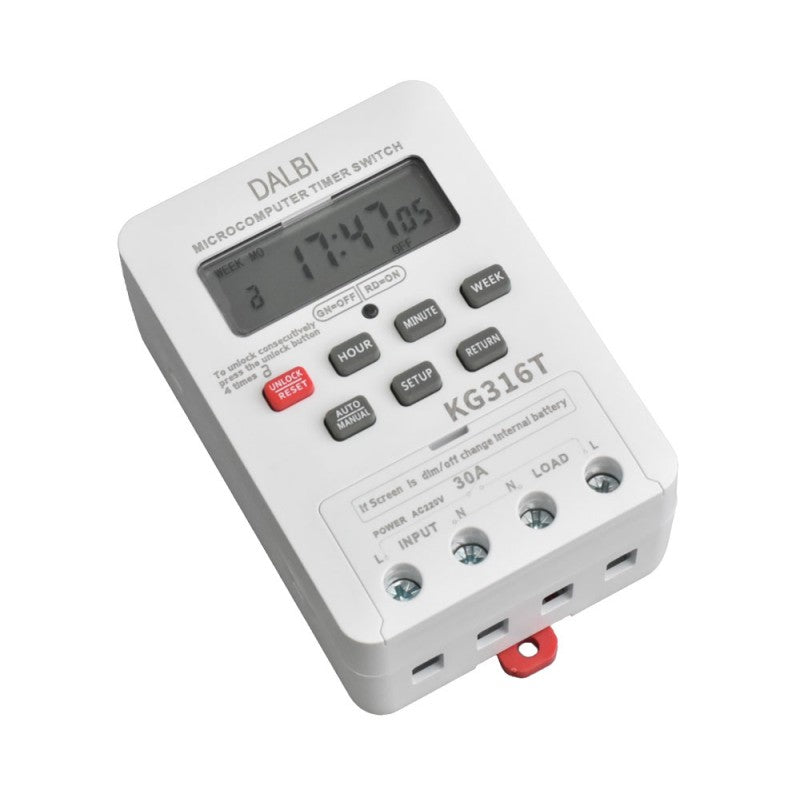 Timer-ul KG316T este un dispozitiv electronic avansat care permite controlul și monitorizarea automată a diverselor procese în funcție de timp. Echipat cu un ecran LCD pentru o vizualizare clară, acest timer asigură precizie și fiabilitate în operațiile sale, fiind ideal pentru aplicații de iluminat, ventilație și irigație.