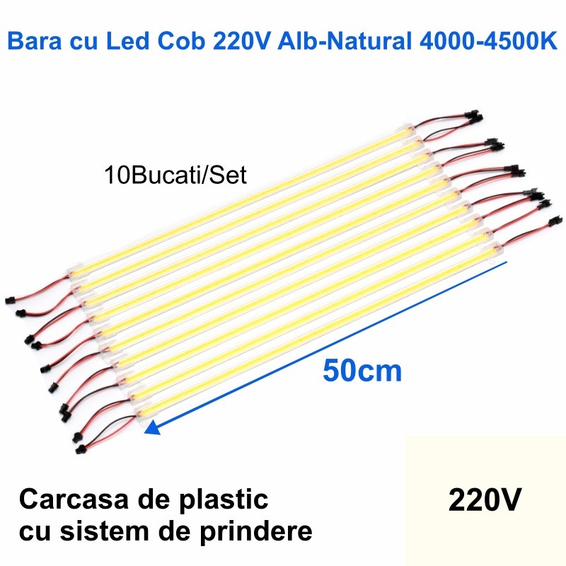 • 1 x Bară cu LED COB 220V Alb-Natural 4500K, 50cm x 10 buc/set