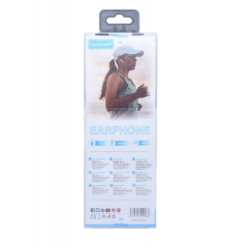 Plug audio headphones with wired microphone and 3.5mm male Jack connector.