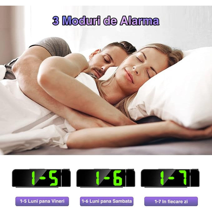 Ceas Digital de Masă cu Proiecție Verde – Funcții Avansate pentru Organizarea Zilei