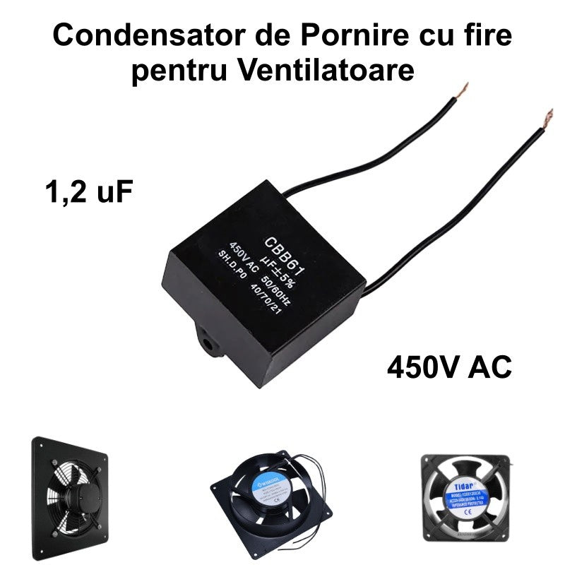 • 1 x Condensator Pornire Motor 1,2µF 450V cu Fire